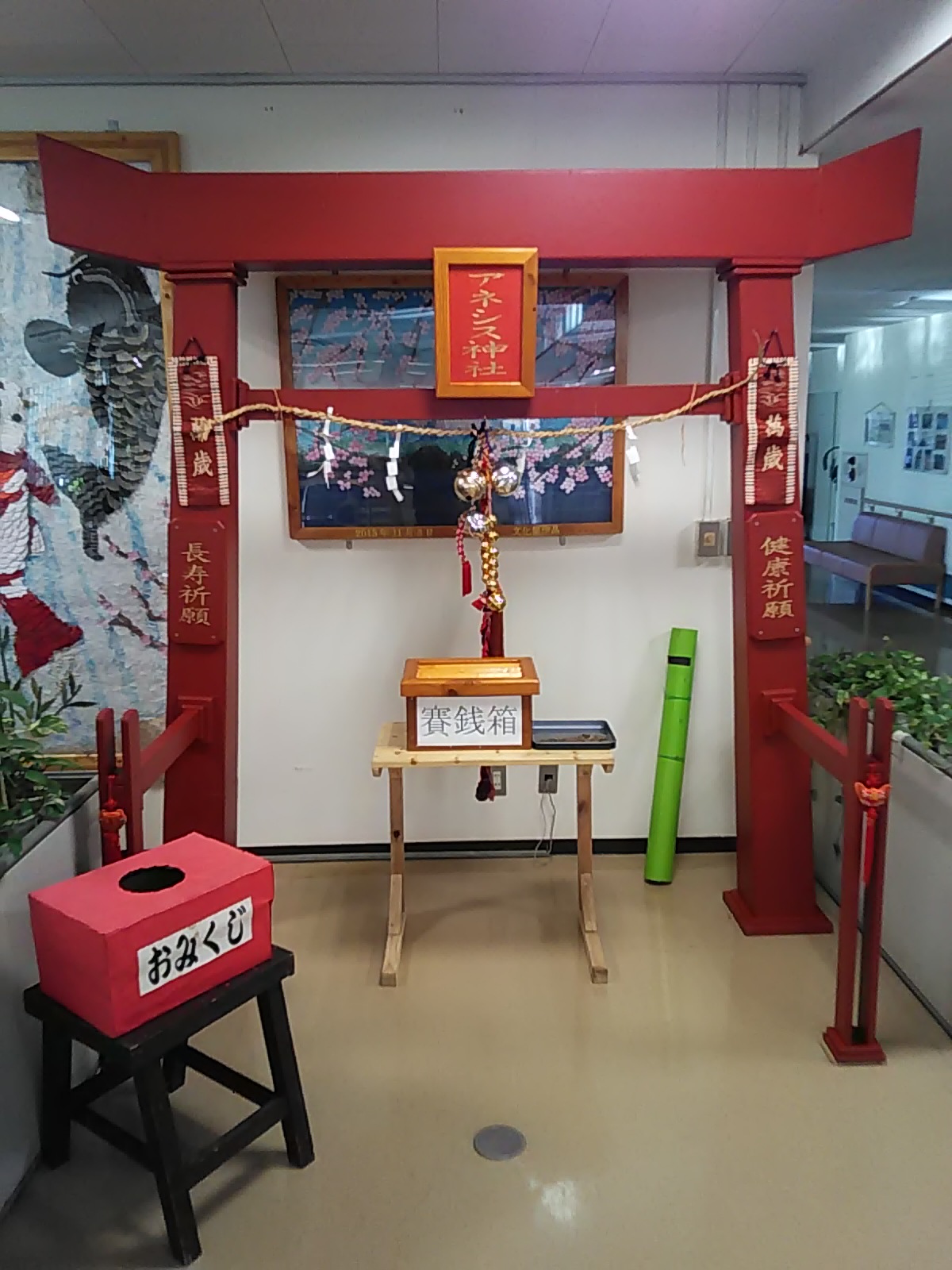 この神社の鳥居は、アネシスの職員による手作りです・・・(凄いですね)。
